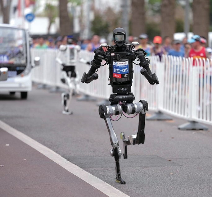 昨天,2026北京亦庄半程马拉松暨人形机器人半程马拉松鸣枪开跑。上百支队伍、300多台机器人,“哒哒哒”的机械脚步声在赛道回荡。