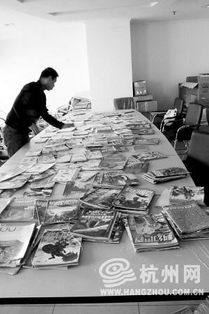 他一下子理出了三大袋,本来准备一次性运过来的,但自行车驮不下。结果,他就驮着两袋书从文一路向杭州日报社进发。40公斤的书,挺沉的,并且因为有棱有角,所以不太稳,一路掉下来四次。
