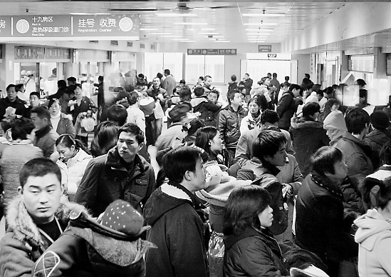 省儿童医院,挂号收费处都是人。本报资料照片
