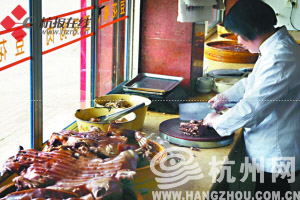 记者了解到,在诸暨城区,每到秋冬季节,当地几条老街上处处狗肉飘香。“狗肉老店”、“活杀狗肉”的招牌比比皆是,已形成了诸暨一道独特的风景。位于诸暨市西北部的应店街镇,更是以盛产狗肉而闻名当地,记者此前曾在该镇采访,镇上有个狗肉一条街,十多家狗肉店进行现场活杀狗肉。