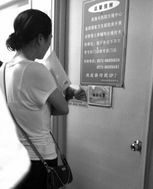 一位长相清秀、30多岁的妻子,正在看墙上关于试管婴儿的介绍,她向站在身边的丈夫说,上海比杭州做得早,那时候我就知道了,就是没去……