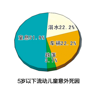 监测显示,家庭生活环境与儿童意外的发生,紧密相连,流动儿童的意外死亡率比本地儿童高。