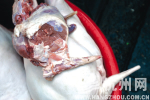 记者连续走访了杭州市区多家烧烤店,大部分有固定店面的烧烤店,都有相对稳定的羊肉供货商,其中有买羊自己宰杀加工的,也有直接从供货商那儿进加工好的羊肉串。还有很多羊肉串烧烤点,进货途径是冷冻食品批发市场。
