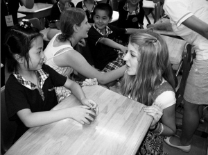去年,学生游学美国,和当地小学生交流。