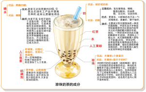 后来因为竞争激烈,一些商家开始动脑筋,从口味上、成本上下工夫,于是牛奶被奶精替代,蔗糖被糖精替代。为了增加风味,加入了富含防腐剂和人工色素的果粉。2009年7月29日出版的《新闻晚报》,援引一位奶茶店老板的说法,有的商家为了让珍珠更有嚼头,甚至往珍珠里加入了类似塑料一样的高分子材料。