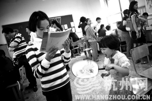 学校的8个教室同时面试。出来的学生说,教室里面试的两位老师,会问兴趣爱好,平时喜欢看些什么书,小学里担任什么职务等。有的学生说也抽做笔试,语文是背诗、写拼音;数学是做应用题。