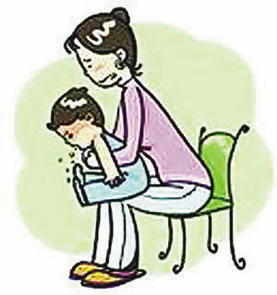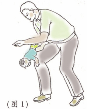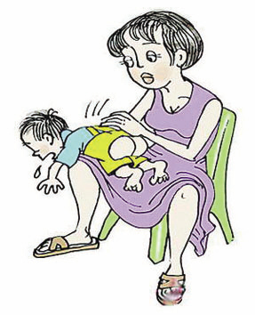 2.还可以让孩子头朝下趴在腿上,头部处于较低的位置,同时使劲往下拍打孩子的背部。