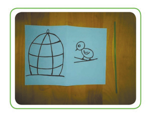 步骤二:用双面胶把管子黏在彩色纸中间。然后用手来回搓,会发现两面上的图案会发生重叠。