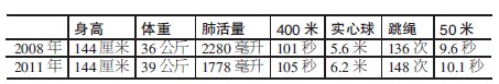 近几年小学生体重增长、肺活量下降