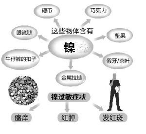 韩冰医师查了很多资料,他说,美国过敏哮喘和免疫协会曾作过调查,全美3%的男性和20%的女性对镍过敏。另一项医学研究调查显示,全球15岁以上的女性,14%对镍过敏。“首饰、手表会引发过敏,皮带扣、牛仔裤扣,也会致敏。我们夏天经常收到一些病人,肚脐周围红红的一圈,查来查去,他们贴身穿牛仔裤,牛仔裤的扣子为金属材质,也含有镍。”韩冰医师说。