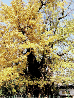 参观结束,胡老师问道:“杭州最有名的三棵古树是哪三棵呀?”同学们纷纷表达自己的观点,有的说是植物园的丹桂王,有的说是美国前总统尼克松送的红杉。胡老师告诉同学们,市内最有名的三棵古树,第一棵是树龄最长的五云山真际寺前的银杏;第二棵是三台山路南高峰脚下的唐樟,这棵树也有一千多年的树龄,有趣的是,这棵唐樟分为南北两枝,朝南的那枝已经枯死,而朝北的那枝依然十分健壮;第三棵是位于吴山有美堂遗址的宋樟,“这棵树可不好找,”胡老师说,“当初为了拍它,我可是花了不少时间。”