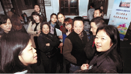 讲座后,家长们围着时代小学校长高军玉(右一)热烈交流。 尹炳炎 摄