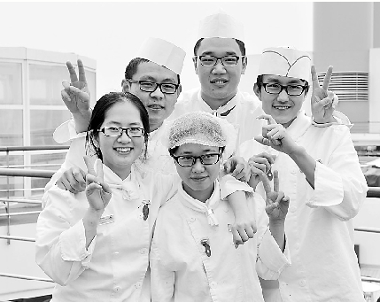 歌诗达维多利亚号上5名浙江旅游职业学院的学生在厨房工作。