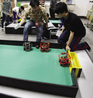 昨天,杭州市第十四届中小学生电脑制作——智能机器人竞赛在杭州第十一中学举行。全市中小学170名选手,带了近百台机器人参赛。