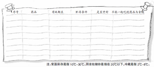 我们画了一张表格样式,建议大家把家里的药填进表格(最好分成儿童与成人两张表),这样家里有些什么药,有没有过期,与哪些药或食物不能一起吃,就一目了然了。