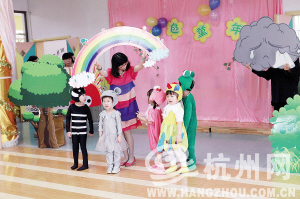 日前,市府机关幼儿园府新园区的小朋友们举办了一场文艺演出。打击乐《加油干》、舞蹈《大树和小鸟》、亲子绘本剧《彩虹色的花》……孩子们用稚气的舞姿演绎着幸福快乐。