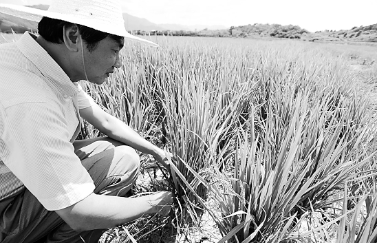 他抬头看了看灼热的晴空,无奈地叹了口气,神色忧愁地说,“如果还不下雨,另外近400亩的水稻田也要保不住了。”