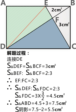 艾老师解释,确定三角形EDC和三角形BDC是同底等高,是解这道题的关键,再减去同一个三角形DFC,得出三角形DEF=三角形BCF=3平方厘米。