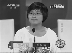 陆佳蕾昨晚在央视《汉字听写大会》第二轮比赛时,听写“鸡枞菌”三个字。
