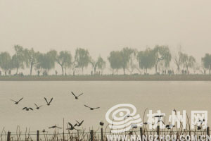 昨天下午,西湖上空雾蒙蒙的。 记者 陈中秋 摄