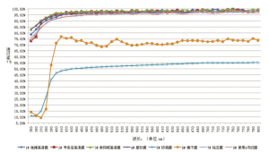 8款手机膜的透光率,有两款低于80%,透光率比较差,曲线越平整,说明光线透过越均匀。