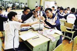 听过大关中学的科学课,给人的第一印象就是“学生是课堂的主角”。“传统的科学课多是老师做实验学生看,学生不亲自参与,兴趣不高。”科学老师丁钱燕说,现在把实验的操作权交给学生,可能一做就花上一节课三分之二的时间,但学生能透过实验对知识点了解更深刻,这样虽然老师少讲些但上课效果却更好。