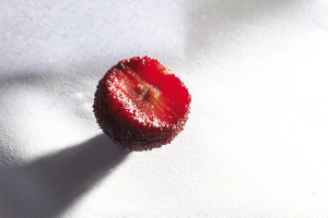 这款黄岩杨梅是试吃的第一款东魁,果肉红得发黑,果形圆润。酸甜搭配得极好,刚咬下去半口红色的汁水就顺着手指汩汩而下,入口瞬间微酸,多嚼几口,甘甜味将残留在齿间的酸感完全覆盖。有8位试吃员给这款杨梅打出了最高分。