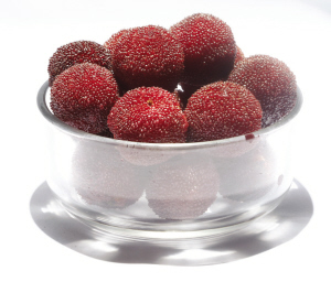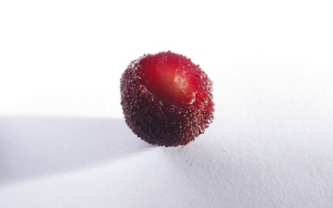 名字叫广东炭梅,实际是上海产。比第一款杨梅稍大些,颜色更黑,表皮色泽光润,但果肉咀嚼起来比较粗糙,汁水比兰溪杨梅少。虽然不酸,但甜度也不占上风,说到底就是味道有些平淡。有一位眼尖的试吃员表示,刚打开冰鲜杨梅上的保鲜膜,立马就看见了杨梅外表颗粒间附着的小白虫,不知道吃下去对身体有无害处。