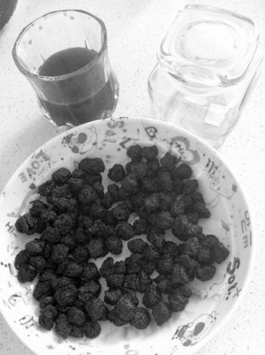 朋友吴小姐将所有杨梅放入保鲜袋,扎紧袋口,接着用手指不停地揉捏它们,将杨梅的汁水挤出来。最后把保鲜袋的一个小角剪掉,将汁水从这个小口子倒入杯子。