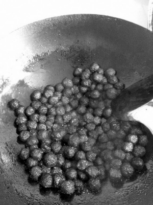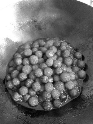 2.糖汁越来越黏稠,调小火,用勺子不停搅拌防止粘锅;