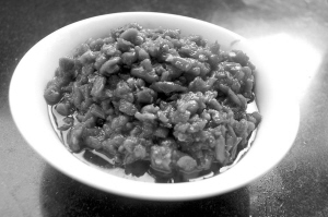 2.按500克黄豆、200克盐的比例将长满菌毛的黄豆倒入罐中,再加西瓜瓤,黄豆和瓜瓤的比例为1∶3,西瓜汁漫过黄豆15厘米左右,再加入辣椒末、生姜丝、八角瓣、花椒;