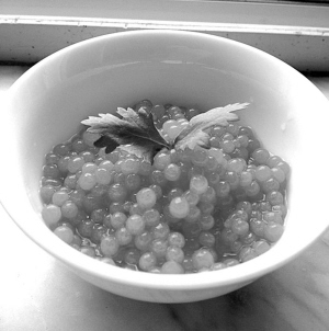 把西瓜汁做成西米粒的形状,无任何人工合成色素添加却能更美貌,重要的是,这道西瓜料理的做法用到了只有“高大上”的分子料理才会用到的材料——钙粉(网络有售)。做个类似鱼子酱的西瓜鱼子,单吃或者配椰汁之类饮料都很有特色。