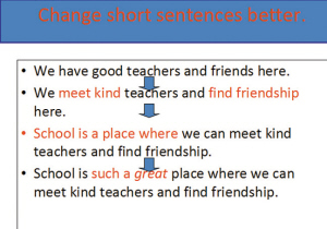 那么,如何在最后一年让作文有一个质的飞跃?翁老师用几个简单的例子讲解。“可以从最简单的句子开始模仿,慢慢地加入一些形容词、副词,再到会用一些词组,最好能加入一些从句,这样整篇文章读起来会更加丰满。但这些并不是一两天就能做到的,要靠平时的积累。”