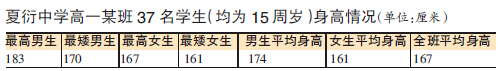 A中学高一甲班共21名女生,除了一名16周岁外,其余都是15周岁。这些女生中,身高在一米六五以上的有4位,最高一米七二。