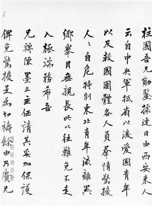 在浙江省档案馆的特藏室里,珍藏着一封杨虎城写给张学良部下何柱国将军的信:“据连日由西安来人云,自中央军抵省以后,爱国青年以及救国团体各人员群情惊扰、人人自危,特别东北青年流离异乡、举目无亲,长此以往,难免不走入极端。务希吾兄转陈墨三主任,请其妥加保护,俾免惊扰。是为切祷,余由乃庚兄面陈。”