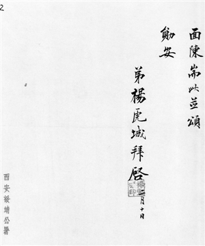 写信的时间是1937年2月10日,“西安事变”后不久,杨虎城已被罢职,不久他就被迫出国“考察”。