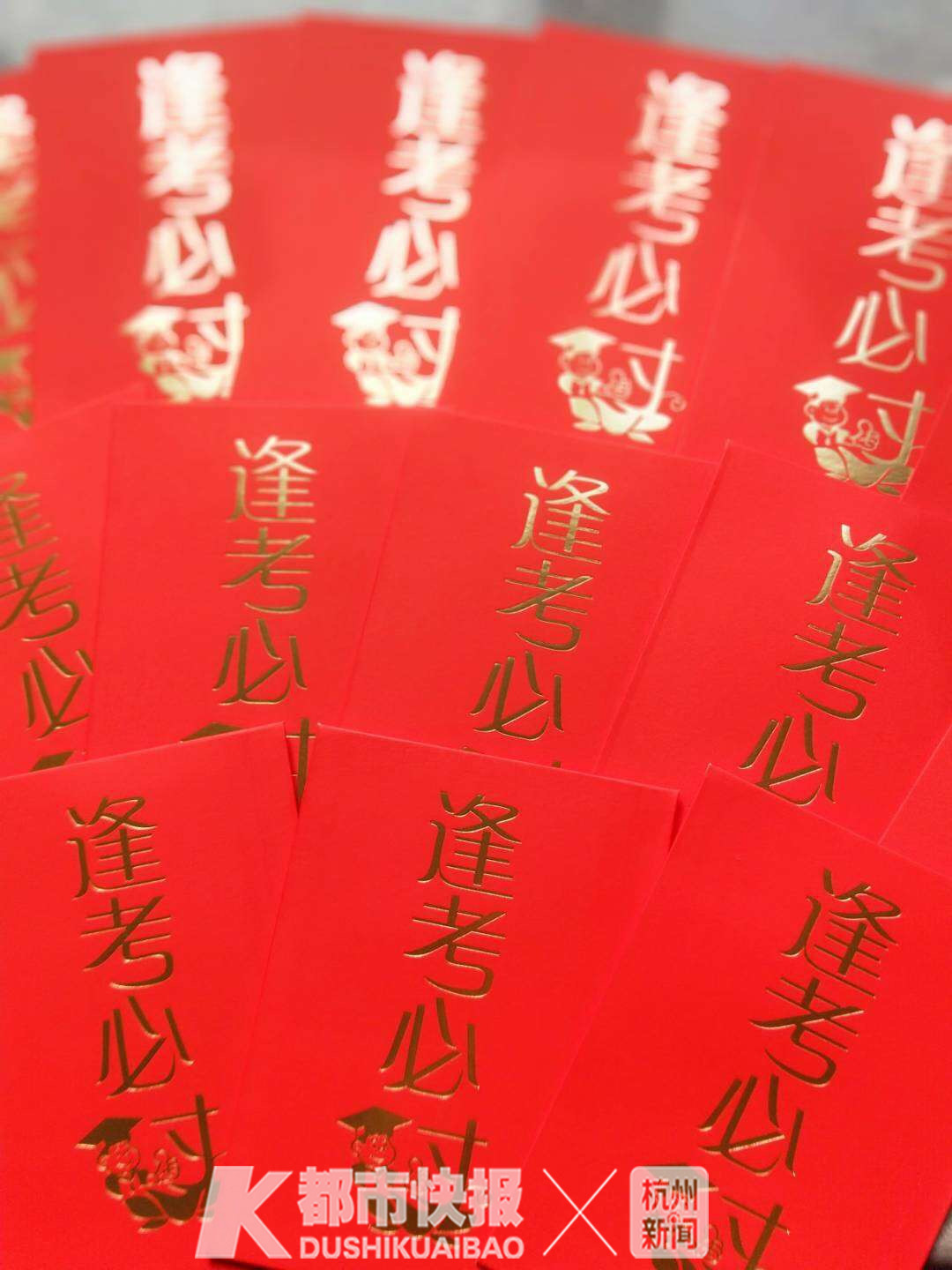 红包里除了奖励,还有一张祝福语。比如:相信自己、认真认真再认真、审题仔细、书写端正等。