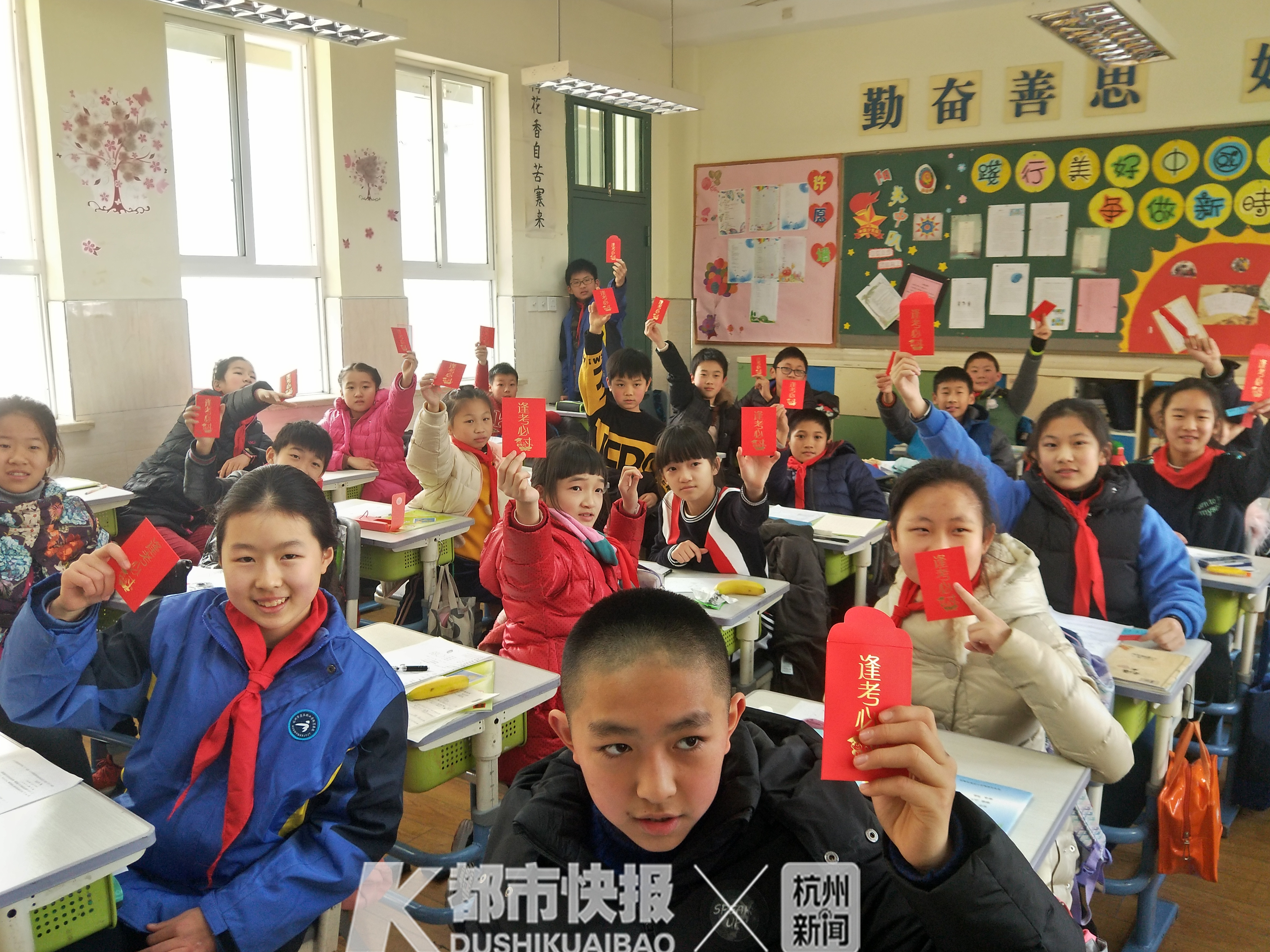 记者赶紧联系上发红包的“财神爷”——六(4)班班主任、语文老师朱心悦。她刚刚给孩子们发完红包。“有孩子拿到一张‘免做作业’的奖励,说要下午就和我兑换。我就让他仔细看看红包背面,有个使用规则,是在下学期及以后兑现的,哈哈。”朱老师说,免考一次,是指免一次单元测试,并非期末考试。
