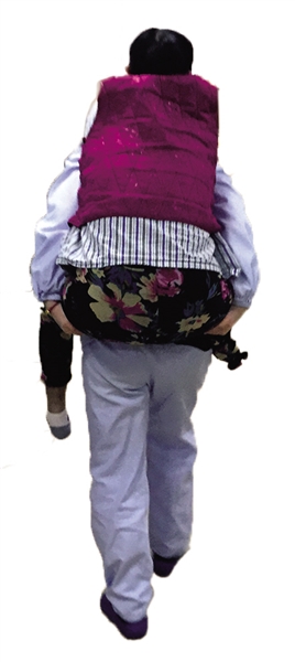 护士小沈背着阿娥走进血透室