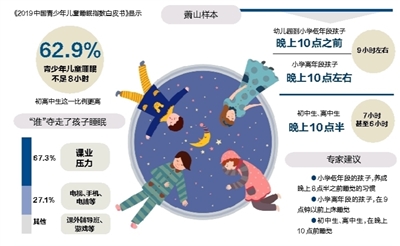 今天是“世界睡眠日”。从中国睡眠研究会发布的《2019中国青少年儿童睡眠指数白皮书》(以下简称《白皮书》)显示,62.9%的青少年儿童睡眠不足8小时,初高中生这一比例更高。 萧山的孩子睡得如何呢?记者分别选取了小学低年段、小学高年段、初中、高中的几位青少年,作抽样调查,从一定程度上反映出萧山青少年儿童的睡眠状况。 记者调查:初中以上孩子很少能睡足8小时 样本之一:“孩子一般晚上10点左右睡觉,早上7点多起床。”高桥小学二年级学生家长朱女士告诉记者,孩子在班级里属于比较晚睡的。家长因为工作关系睡得较晚,孩子也跟着睡得晚。 样本之二:孩子在劲松小学读六年级的家长杨女士也表示,孩子一般在晚上10点左右睡觉,早上6点半左右起床。她说,平时孩子有课外辅导班,晚上7点半结束后,回到家再看会书,上床基本就要10点左右了。 样本之三:曹女士的女儿现在是城区一所初中初二的学生。“学校晚自习晚上9点结束,到家一般是9点20分,再吃点东西、洗漱,睡觉基本在10点半了。”曹女士说,刚上初中时,女儿住校两个月,但她常常记挂着闹铃时间,导致晚上睡不好。“就想孩子多睡会,后来就不再住校了,每天早上我们叫她起床。” 样本之四:张女士的孩子小吴是初三的学生,面临着中考压力。晚上11点半睡觉,早上6点起床已成为生活常态。“孩子太辛苦了,最近每天给她吃点石斛粉,就想她能睡得好一点,第二天学习状态才会好。” 样本之五:杜先生的儿子现在读高三了,谈到孩子的睡眠问题,刘先生坦言,因为住校,在学校的睡觉时间比较固定,学校统一熄灯后,基本睡了,偶尔也会打着电筒“挑灯夜战”一会。反而周末回家放松了,常常到晚上11点多还在玩手机,要等家长不断催促之后才会睡觉。 从抽样调查情况看,幼儿园到小学低年段孩子一般都在晚上10点之前睡觉,高年段的孩子则在晚上10点左右睡的较多,早上起床基本在7点左右,孩子的睡眠时间在9小时左右。相较于小学生睡眠时间较为充足,初中生、高中生的睡眠时间则被挤压到了7个小时,甚至6个小时。 是“谁”夺走了孩子的睡眠?从调查中可以看出,随着孩子年龄的增长,课业压力增大,睡眠时间也被一压再压。而《白皮书》调查数据也印证了这一现象。调查发现,繁重的课业压力成为影响孩子睡眠的第一因素,占67.3%;其次是电视、手机、电脑等产品,占27.1%。此外,种类繁多的课外辅导班、家庭晚餐不规律、游戏、疾病等,也是影响孩子睡眠状况的因素。 “很想孩子早点睡,但作业比较多,做完就到10点以后了,孩子想早睡也没办法。”女儿读初中的沈女士坦言,初中基本是女孩子长身高的最后阶段了,也想让孩子有充足的睡眠,好抓住长个的尾巴再“蹿蹿”。 “孩子5门功课,每门功课的作业量在40分钟到1个小时,往往从晚上7点要做到11点。”孩子处在中考冲刺阶段,作为父亲的陈先生很心疼。 “儿子有电脑,也有手机,做完作业经常还要捧着电子产品不放,导致晚上迟迟不睡,早上催了不起。”陆女士的儿子读初一,她认为,除了课业负担外,如今的电子产品也成为青少年晚睡的重要因素。 专家建议:青少年尽量在晚上10点前入睡 研究表明,青少年睡眠状况与身体发育、智力发育、认知能力、学习成绩、性格、健康状况和肥胖等有密切关系。 面对目前青少年的睡眠情况,区第一人民医院生长发育专科门诊主治医生蔡姿秀表示,在孩子睡眠习惯的养成上,家长会有较大的影响,如果父母都是晚睡族、夜猫族,孩子也会跟着睡得比较晚。 在孩子睡眠习惯养成上,蔡医生对不同年龄段的孩子给出了建议:小学低年段的孩子,建议养成晚上8点半之前睡觉的习惯;到了小学高年段,可能会因为一些功课、兴趣班等外界因素,没有办法在8点半之前睡觉,建议能够在9点钟以前上床睡觉;对于初中生、高中生,本身学业压力较大,从身体健康和免疫力的角度出发,建议孩子在晚上10点前睡觉。 “相比让孩子在晚上熬夜写作业,宁可让孩子早上提早起床,把作业写完。这一点对于初、高中学生也是这样。”蔡医生表示,对于身高偏矮的孩子,一定要按时睡觉,因为晚上10点到11点是生长激素分泌的高峰,只有在这个点前保证进入深度睡眠,才有利于孩子生长发育。 |