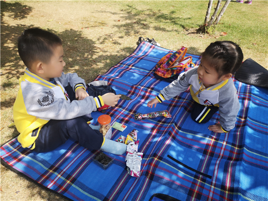 当然,在这温煦绚丽的春色里,阳光下,草地上,花丛间,铺上几张地垫,也是极美的!孩子们最美妙的野餐时间到啦!孩子们拿出自己的包里最好吃的食物,还有爸爸妈妈的“爱心餐点”,快乐分享的声音不绝于耳。孩子们,伙伴们吃着、聊着,笑着,畅游在大自然的怀抱里,陶醉在春天的美景中。 自然界是个大课堂,孩子们在大自然中能增长知识,开阔眼界,启迪智慧。快乐丰富的春游活动在孩子们的兴奋和开心中结束了。孩子们亲近了大自然,感受了春之美,体验了春之乐,更重要的是此次活动在每个幼儿心中播下了一颗热爱自然、关爱生命的种子,为幼儿身心健康发展奠定了一块基石。 |