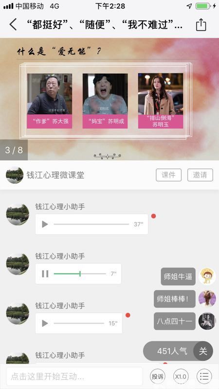张老师特别指出:在上“渣男”课的时候,我们不宣扬女权注意,而是希望女性不管碰到是不是渣男,女生第一条就是要保护好自己,不要一位地感情行事,自己要对自己负责。在爱他人之前先要爱自己,在让他人为自己负责前先请自己对自己负责。强大的女生,不光是有追求爱的勇气,也要拥有及时“止损”的智慧。渣男也好,暖男也罢,能决定强大的女生什么呢?强大的女生,只要永不放弃自己,永远奋力前进往前走,什么样的经历都是一种收获。 什么样的人是“渣男”? 什么是渣男?有什么特征呢?张老师介绍了她的一些归纳。 张老师给渣男的定义是: 渣男是人品问题为基础的,自私、缺乏责任、玩弄他人为乐趣的男性。 集中表现在以下三方面:第一方面,是四处跟人搞暖昧只是想玩弄你的身体和感情;第二方面,是爱你是真的又爱上了别人也是真的;还有一种是在一起之后就会暴露其阴暗的一面,比如对你严格控制,翻看你手机,实时监控着你,你的一切都要跟他报备。她提炼了6点渣男的特征,供同学们参考: 人在心不在。不爱你,还是选择跟你在一起,也许是解决他的生理需求或者想要你的温暖;在这相处过程中,还保持着与其他女性的“暧昧”,经常“朝三暮四”、“彩旗飘飘”,甚至还经常忘不了“前女友”。 人不在心不在,把你当“备胎”。并不喜欢你,但时刻要你身边,把你当“备胎”准备,当他受伤了或者难过了都会来找你,俗称“蓝颜知己”,他其实是懂你对他的感情的,但是却拿着你的深情来“肆意挥霍”。 分手人品差。俗话说:分手见人品。“渣男”会在你们分手后,对你各类诋毁,甚至用一些卑鄙手段。比如,不乏有“前男友”拿着女性的个人隐私来威胁,你如果不顺从我,他就扬言把你的隐私照片寄给你爸妈或者寄给你同学等卑鄙手段。 相处过程中不尊重你,缺乏责任心,无担当。在相处过程中,缺乏责任心,在这里以“避孕”为例。渣男往往会以“不舒服”为由,拒绝避孕,自然就增加女生怀孕风险。大学生意外怀孕,怀孕堕胎,会对女性不光是生理上的伤害,更多的是心理伤害。记得之前,我去第七人民医院跟医学习期间,就见到一个女大学生,怀孕堕胎后经常在耳边出现“儿童哇哇大哭”幻听,看到街上别人抱着小孩子自己会哭等,晚上无法入睡,对孩子的愧疚感和自我的无助感使她不得不进七院进行住院治疗。甚至有些男生在得知女友怀孕后,举足无措,立马分手,“逃之夭夭”,甩锅无担当。 花你钱吃软饭。为什么加入这一条,因为大学生的生活费往往都来自于父母资助,给男朋友买点小礼物表达感情无可厚非,但是变着法让你送礼物,刷卡买单,我觉得本身就是渣男“品行恶劣”,况且你的父母完全没必要养这样一个剥削自己女儿的寄生虫。 有暴力倾向和行为。暴力可以分为:精神冷漠型和肢体暴力型。动手打人,且不用说,肯定是渣男一个,而且同学们请记住,遇到暴力男时必须要立马转身走人,如果严重就要报警来保护自己。家暴男不是天生有暴力倾向,而是后天从父母那里习得的。可能是他父母一方或者双方会经常用武力来解决问题,也许他也是家暴的受害者,但在现实的相处中,他也会成为家暴的实施者。除了肢体暴力,还有就是对你无视的冷暴力,冷暴力也绝对会给你精神带来极大伤害。 杭师大钱江学院给学生开通了心理微课 杭州师范大学钱江学院老师介绍,本学期,由杭州师范大学钱江学院学工部主办,院心理健康教育与咨询中心、心理健康教研室承办的“钱江心理微课直播”在荔枝微课平台一经推出,就受到了广大师生的热捧,这也是该学院今年“5.25心理健康月”重点推广的一项创新教育项目。 自4月起,每周三、周日晚上九点,杭师大钱江学院的同学有了和以往不一样的活动内容,找一个安静的地方,戴一个耳塞,在手机那头期盼着心理微课直播,听自己所熟悉的老师聊日常生活中的心理学。 当代大学生最关注的心理困惑是什么?最期望解决哪些问题?经过前期大量调研,结合学生的心理诉求,钱江学院心理健康教研室确定了12个跟大学生密切相关的主题,开出了“心理微课”系列直播。事实证明,这种“你点单,我上课”的“菜单式”心理课程,颇受学生欢迎。 关于设计此次微课的初衷,本次心理微课直播的策划人,杭师大钱江学院心理健康教育与咨询中心主任、学院心理健康教研室主任周凤琴老师告诉记者,“心理学是一门有趣且实用的课程,根据学生实际诉求推出‘心理微课’系列直播,是我们在互联网+时代背景下进行心理健康教育方式改革的全新尝试。微课内容短小精悍,既有讲课,也有互动答疑,时间全程控制在30分钟以内,重点在于解决学生真正存在的心理困惑。” 截止2019年5月23日,已经有1304人关注心理微课专栏,累计收听达到5089人次。 |