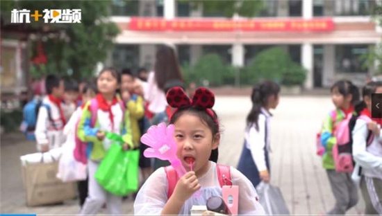 今天是5月31日,中午11点,天水小学的小朋友就早早放了学。一年级的小朋友排成长队,规规矩矩跟老师行礼道别后就蹦蹦跳跳走出了校门。孩子们脸色洋溢着笑容,手里拿着玩具,嘴里叼着棒棒糖,脖子上系着飘扬的红领巾,别提多开心了。