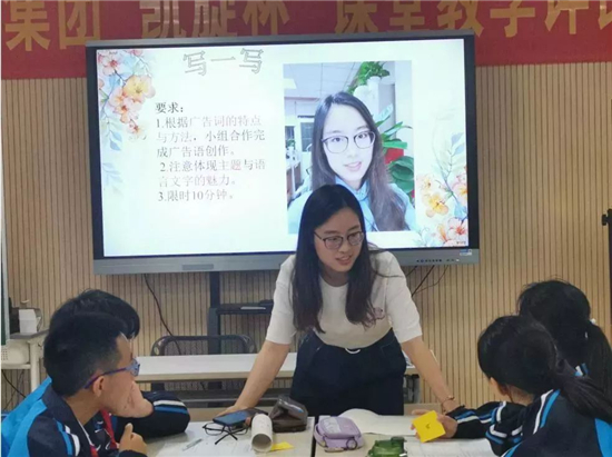 学生们脑洞大开 这则征婚广告的要求是:根据广告词的特点与方法,小组合作完成广告语创作,注意体现主题与语言文字的魅力。 学生们立刻热烈讨论开了,写出的广告词也很有意思,不少听课老师掏出手机拍照。 有同学写:“此女只应天上有,人间能得几回瞧。琴棋书画样样行,嫁妆试卷千万张。” 还有学生运用了谐音梗,让陈老师很是满意:“我是你的诚‘欣’,你要把我捧在手心。” “仙女芳龄十八,‘陈’熟稳重,让你每天‘欣’情自在。仙女晨新出现,一路火花闪电。” 还有同学不管三七二十一,上来就对这陈老师夸了一通:“美愉悦眼睛,而气质的优雅又使你灵魂入迷。什么样的女人,孕育出什么样的家庭。找女友,选陈欣,好生活将会来临。” 瞧这广告词写的!是不是看完之后就很想认识一下陈老师呢?! 其实,陈老师并不是什么恨嫁女,1996年生的她,现在毕业才不到一年。去年她刚从杭州师范大学毕业,来到景芳中学担任一个初一班级的班主任,负责2个班级的语文授课。 |