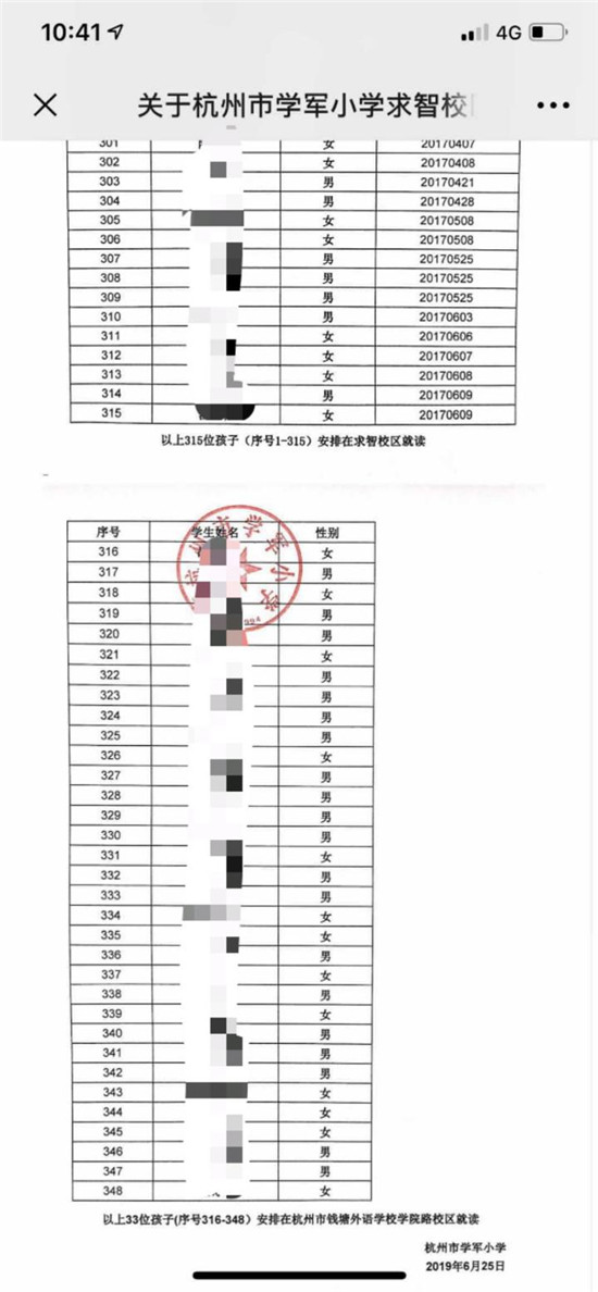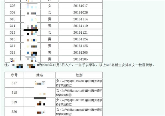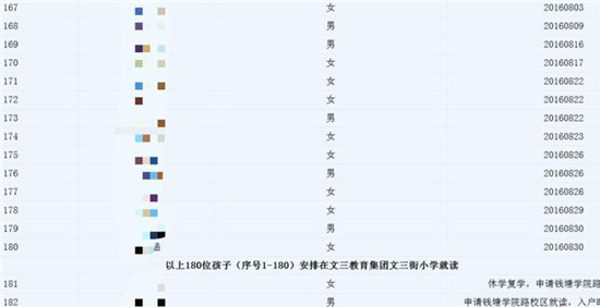 浙江新闻客户端 记者 纪驭亚 今年,杭州首次实行小学公民办同招。大家最关心的问题莫过于,民办小学是否会降温?热门公办小学会不会进一步爆表? 记者注意到,从6月25日开始,杭州部分热门小学就已经在官网上公布了一表生录取情况。相比于去年,今年的公布时间提早了近一个月。但从已公布数据来看,热门公办小学最晚落户年限与去年相比还是比较平稳的。 据悉,还有更多的热门公办小学会在近期公布该校今年一年级新生的落户时间,我们将持续更新———— 杭州市学军小学求智校区2017年6月9日 昨天,家长群里就已经在流传今年学军小学求智巷校区的落户年限情况。其中,315名一表生安排在求智校区就读,33名一表生安排在杭州市钱塘外语学校学院路校区就读。 表中可见,今年该校区的最晚落户年限为2017年6月9日。而去年最后一名进入该校区就读的一年级新生落户年限为2016年5月24日,基本保持平稳。