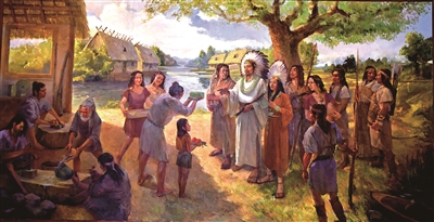 工匠向王献玉琮大型油画。 10000年前,地球冰期结束,人类开始在新的气候和环境条件下创造新生活。 7000年前,环太湖流域气候温暖湿润,良渚地区已有先民在湖沼平原的高地上建立家园,繁衍生息。 大约5000年前,作为人类文明起源的几个重要区域,两河流域、尼罗河流域、印度河流域、黄河流域和长江流域等出现了一系列早期城市,它们是区域内的人口中心、文化中心和经济中心,也是政治中心、宗教中心和军事中心,是人类社会进入文明时代的标志。良渚文化就是产生在这个时期,自然环境适宜人居,人口和聚落数量不断增多,逐渐诞生了一个早期的国家——良渚王国,都城就在现在的良渚古城。 有国家,就有社会阶层。 三重向心式都城布局 用空间秩序强调权力中心 “从三重空间的都城格局、区分等级的墓地和出土玉器所反映的用玉制度,可以分析出当时的社会阶层。”浙江省文物考古研究所所长、良渚古城发现者刘斌说。 我们先来看良渚古城,它是按三重向心式布局的。最中心的是宫殿区(39公顷),是整个古城的核心区;宫殿区外面是内城(含宫殿区约280公顷)和外城(约351公顷),古河道贯穿其间。这一布局,与后世都城“宫城、皇城、郭城”的三重结构体系十分类似,是早期都城规划的典范。 宫殿区位于城址区中央,地势最为高敞,包括莫角山台地及其南侧的皇坟山台地、池中寺台地,是良渚时期的权力与信仰中心。其中,莫角山台地是利用自然山体人工堆筑扩建而成,东部人工堆筑厚度约10-12米,面积约30万平方米,台地上有大莫角山、小莫角山和乌龟山三座独立的宫殿台基,沙土广场以及35座房屋基址,是良渚时期最高统治者的活动与居住场所。 内城由周长近6000米,宽约40-60米的城墙围合。现存较好的古城墙,残存高度最高处约有4米,一般残高约2米。内城除位于中心的宫殿区外,还发现有20多处人工营造的台地,以及纵横交错的古河道。 “我们在钟家村台地西侧的钟家港古河道旁,发现了很多玉料、玉钻芯、黑石英片等,以及石钻芯、漆木器坯件、骨器残料等。”浙江省文物考古所考古学家王宁远说,说明这段河岸台地除了居址外,还存在着专门制作玉石器和漆木器、骨器的手工业作坊,表明内城居民中至少有部分为高端的手工业生产者。 外城位于内城外围,由17处断续分布的人工营造台地构成。这些台地主要是墓地和居址遗址,其中长垄状的扁担山、和尚地、里山、郑村、高村、卞家山等台地,基本跟内城北、东、南三面城墙保持平行,从而构成了外城半闭合的轮廓框架。 刘斌认为,由宫殿区及内城、外城组成的都城布局,反映出区域性早期国家意欲借助空间秩序的规划,建立和强调权力中心场所、明确社会阶层差异。 |