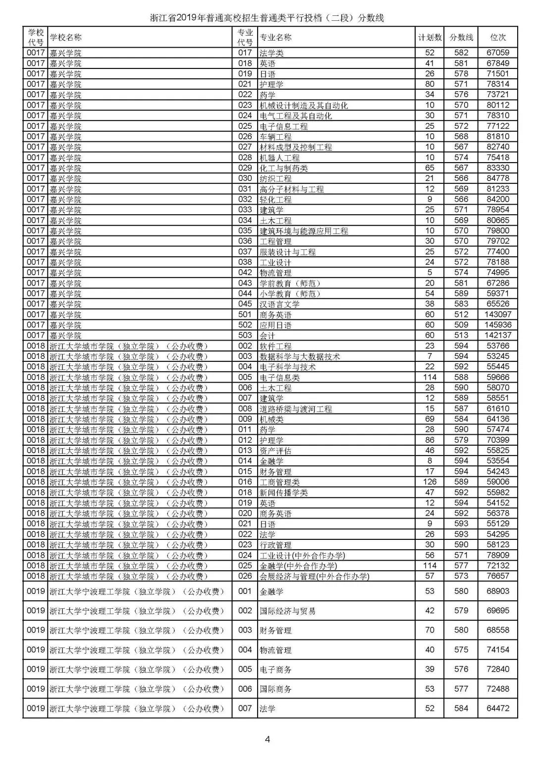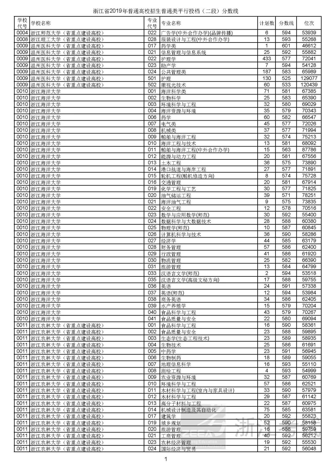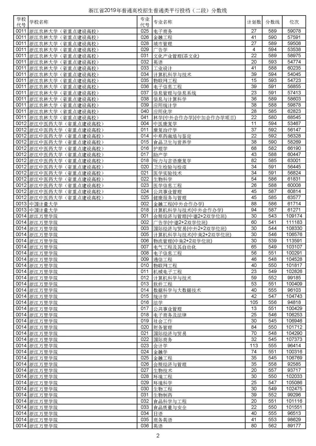 下附普通类二段平行投档分数线: