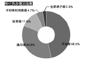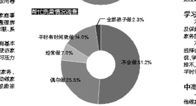 调查数据显示,经常主动要求做家务的孩子占比达38.3%。