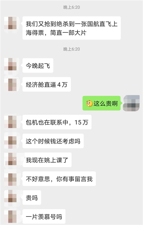 杭州日报 这是昨天(17日)早上的英国地铁。空无一人。 紧张与不安感笼罩着城市。而身处这个国家的近10万庞大留学生群体要不要回国,怎样回国,牵动着许许多多家长的心,大家想方设法,又因远在千里之外使不上力。 有人看着动辄数万的机票,还一票难求;有人抢到了票,却发现没有司机愿意搭载去机场;有人不得已留守当地,打医疗电话,等1个多小时;当然,也有留学生家长选择相信:英国政府应该不是傻子...... 留学生家长:经济舱直逼4万,包机15万 “这个时候还考虑钱吗?” “我们又绝杀到一张国航直飞上海的票,简直一部大片!” 昨晚刚联系上浙江湖州妈妈陈女士(化名),她就发了这么一句,看得出内心庆幸。 陈女士是浙江湖州人,孩子在英国拉夫堡文法学校上中学,与当地家庭签过监护合同。 因为疫情加重,和很多在英留学的家庭一样,陈女士家也想着让孩子回国。只是过程之艰辛,大家前所未遇,航班频频加价、又频频被取消。 昨天上午,陈女士孩子之前买的东航航班(今晚起飞)就被取消了。早上得到这个消息,整个家里一片沉寂。她在“浙英抗疫互助交流群”里说了这事,很快冒出许多人问:哪个航班? 问的,大多都是在浙江的家长。在这个临时组建的互助群里,每天有人向陌生群友发问: 一位浙籍的朋友昨晚在英国的家里发热了,该怎么办? 我从上海快递口罩到伯明翰,怎么寄快递比较好? 我们买了曼城经香港回杭州的机票,听说香港已关闭机场不能转机,消息确定吗? 也有人大概抢到了机票,又担心孩子一路去机场也有风险,问:华人私家车有办法联系得到吗,想送机。 留学生家长内心牵挂、迷茫、着急,想为孩子找法子又使不上力,是这一阵子的心理写照。他们向有着相似背景的同胞群体们聚拢,一起求助、划策。 昨天下午,陈女士时刻不停地刷票,直到“整个人都虚脱”,才抢到一张国航直飞上海的票,“纯属运气好”。 “明天凌晨4点(北京时间)起飞。经济舱直逼4万。” “包机(几位回国乘客一起包机)也联系了,15万。下午再晚一步,我们包机就打算支付了。” “这个时候钱还考虑吗?贵吗,一片羡慕好吗?”