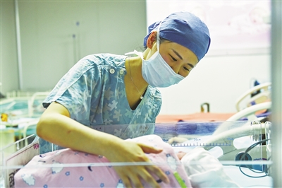 换上手术服,戴上手术帽,早上8点,浙大妇院分娩室责任组长、主管护师肖莹已经在产房做好交接,开始一天的工作。路过待产室,她抬头看了一眼墙上的新生儿照片墙,微微一笑说,“这都是我们产房医护自然分娩的孩子,很可爱吧!” 肖莹是责任组长,每天需要做好产房日常管理、人员调配、导乐安排、巡视指导、查房接生等工作,遇到处理不了的问题,她会及时向医生和护士长汇报。 “慢慢来,我们试着下床走走,在瑜伽球上坐半小时,争取让宫口开得更快,促进自然分娩。”下午3点,一位年轻产妇因为宫缩痛,一直在呻吟。肖莹一问,当天凌晨三四点,她的宫口就已开到3厘米,被送入待产室。 头胎通常第一产程较长,肖莹摸摸产妇的头,鼓励她下床进行自由体位待产,“快了快了,再坚持一下,你身体条件很好!”肖莹的孩子今年8岁,当妈妈后,她更懂得鼓励的重要性。这天夜里11点,好消息传来,这个让她牵挂的产妇终于宫口开全,进入分娩室,第二天凌晨1点诞下了健康宝宝。 浙大妇院产房共有两间待产室和7间分娩室,平时分娩室几乎全满,肖莹不断来回巡视,帮助处理低年资助产士遇到的问题。为了保证母婴平安,肖莹她们总会陪伴鼓励,帮助产妇按摩腰部,洗热水澡,通知麻醉师为条件具备的产妇进行无痛分娩,减轻痛楚。 “我们医院收治危重症孕产妇多。刚进产房工作时,遇到需要侧切的产妇,我根本不敢看,后来慢慢适应了。”有一回,待产室一位凶险性前置胎盘的产妇,突然大出血2000毫升,肖莹和同事发现后,争分夺秒抢救,最终母婴平安。 相比其他职业,助产士需要三班倒,常常后夜班连着前夜班上,没有固定节假日。每日晨曦朝露去,披星戴月归,但肖莹对这份职业有着强烈的认同感:“能做第一个托起新生命的人,意义非凡。” |